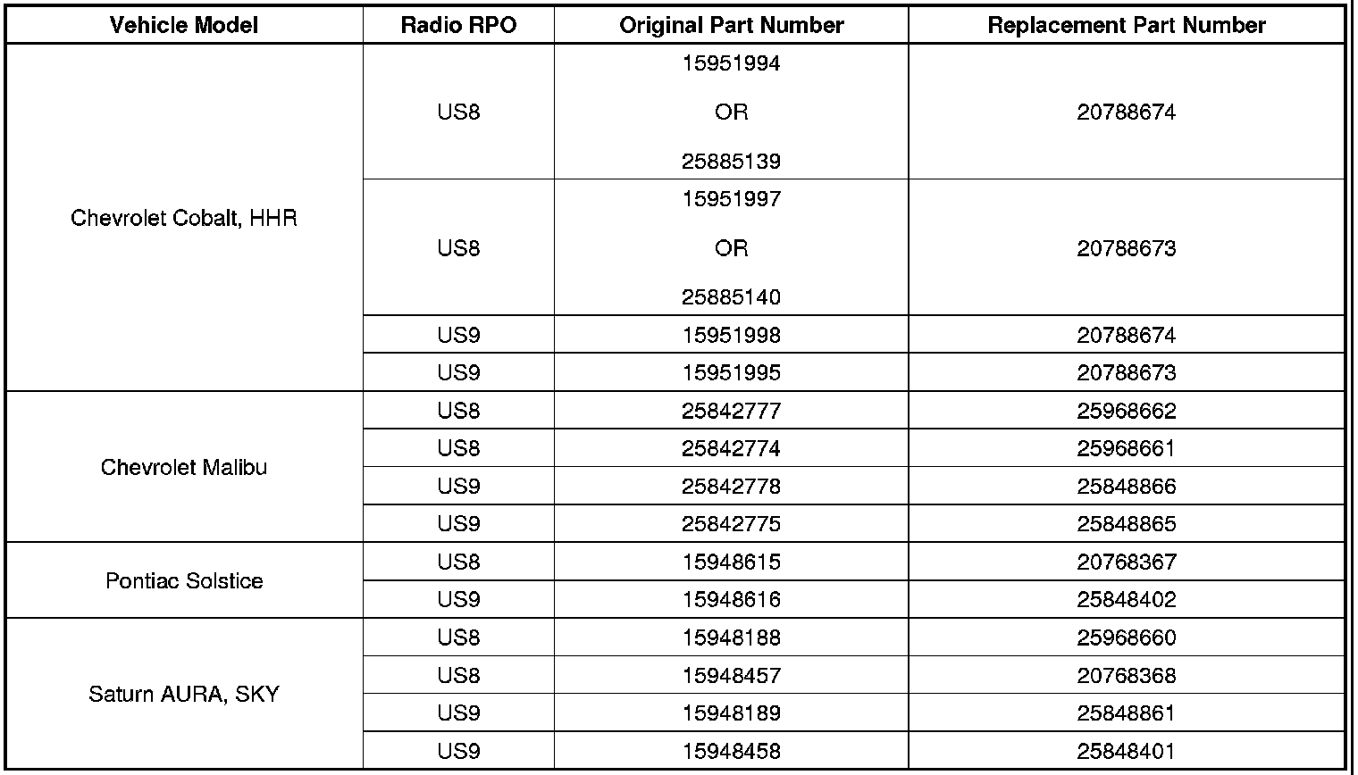 Refer to the Parts Information below for the updated replacement radio part number.