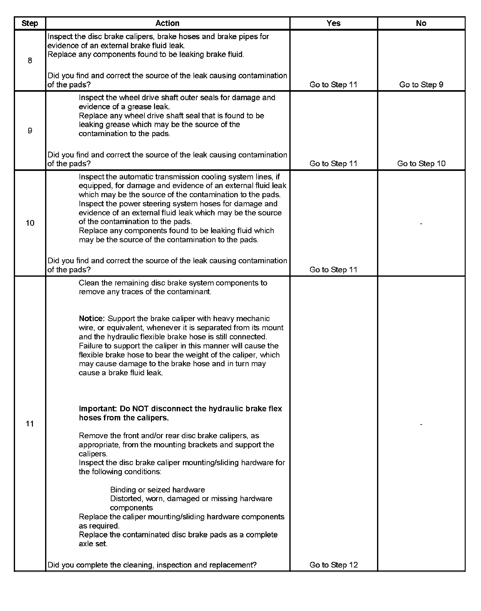 10. Lubricant leaks from non-brake system components may come in contact with and contaminate brake system components.