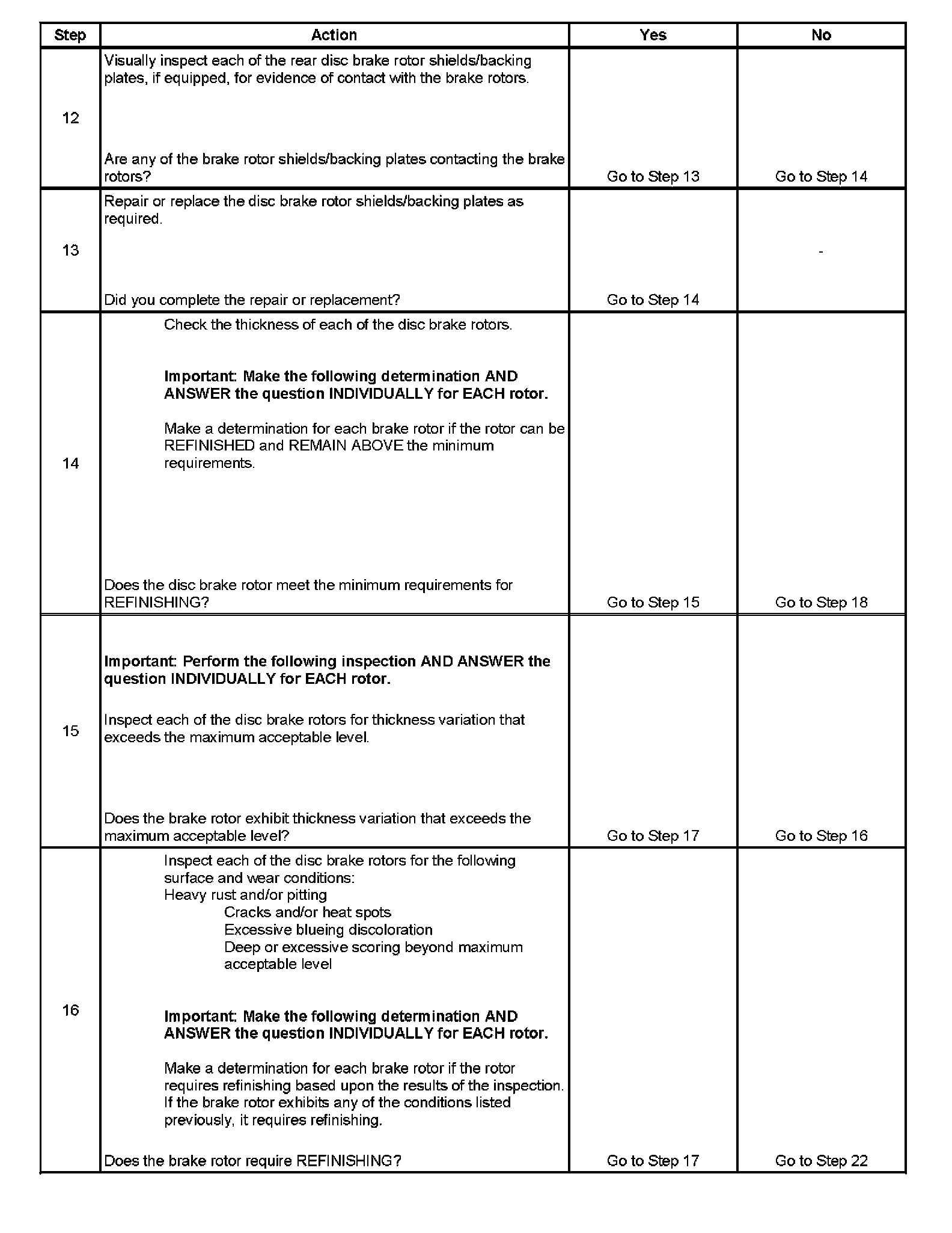 12. Disc brake rotor shields/backing plates that come in contact with disc brake rotors may cause brake system noise.