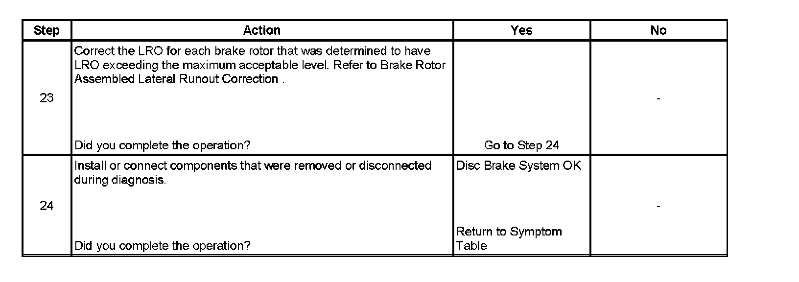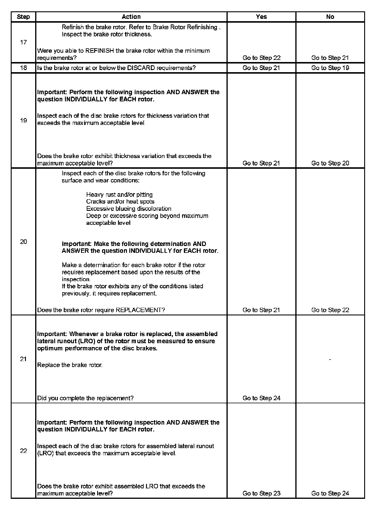 22. Disc brake rotor assembled lateral runout (LRO) that exceeds the maximum acceptable level can lead to thickness variation.