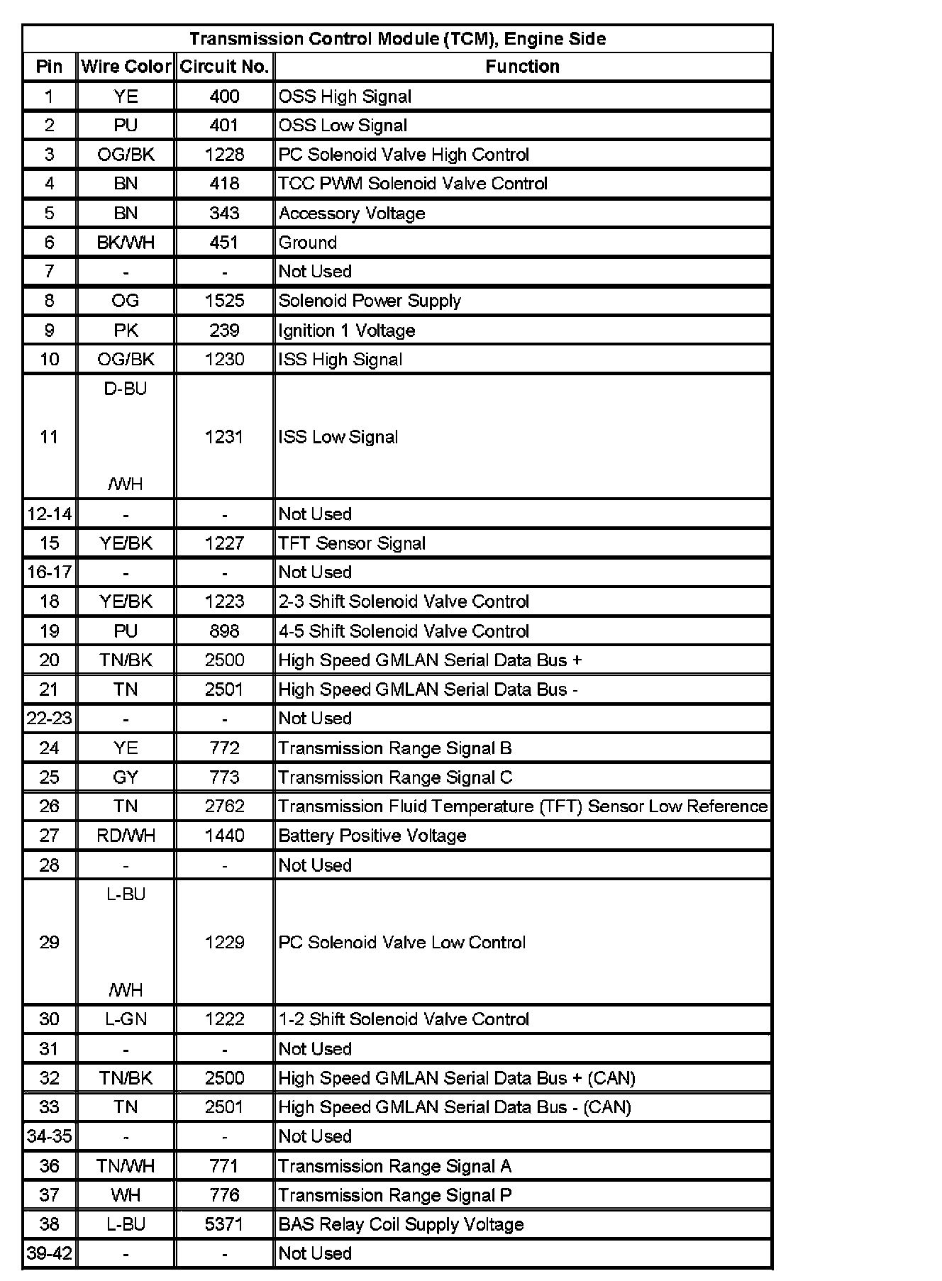 Transmission Control Module (TCM), Engine Side: