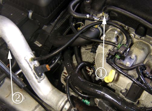 2. With a cold cooling system, lower the coolant level enough that when removing the coolant return hoses from the cylinder head and radiator return ports coolant will NOT leak on to the ground or on surrounding components. Prior to removing the hoses, place shop towels around the bottom of the ports to absorb any lost coolant.