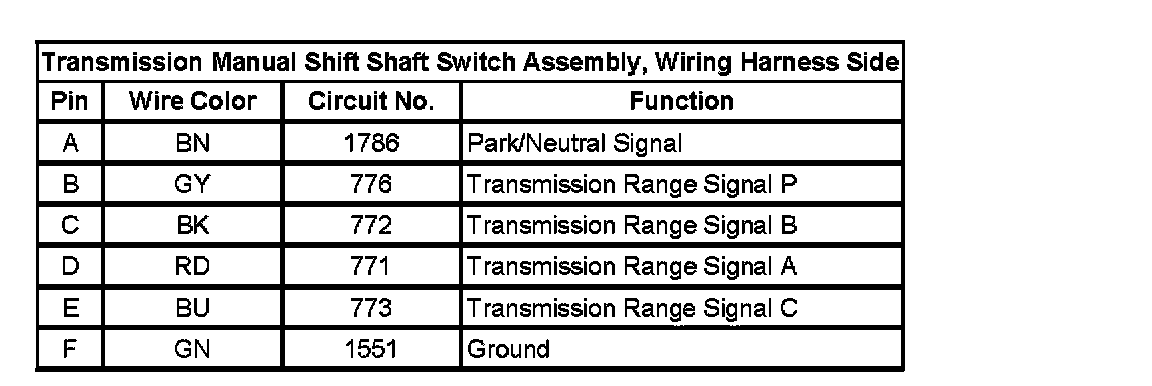 Transmission Position Sensor/Switch: Diagrams