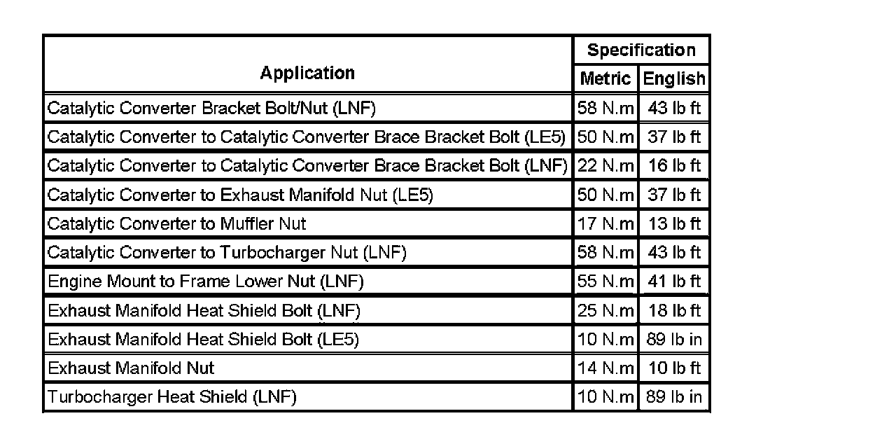 Fastener Tightening Specifications: