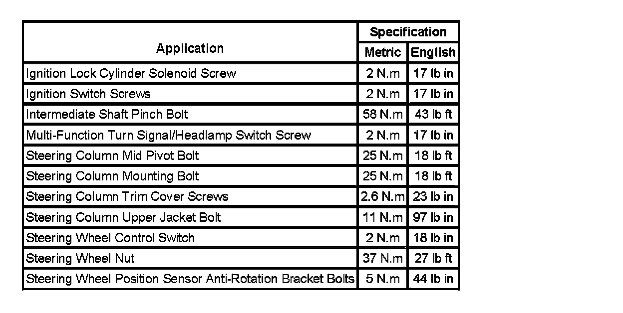 Fastener Tightening Specifications: