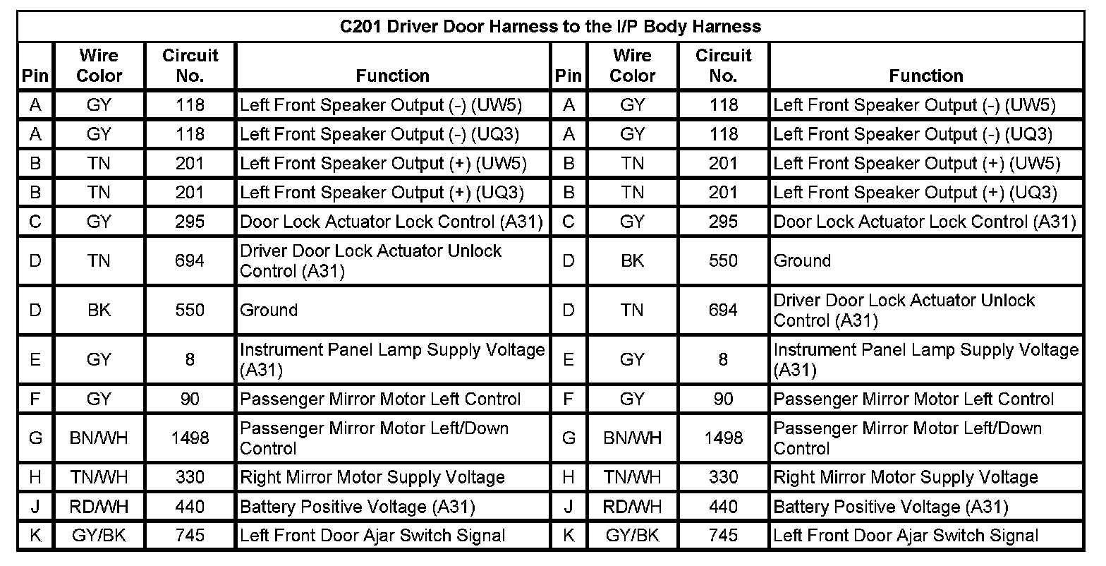 C201 Driver Door Harness to the I/P Body Harness