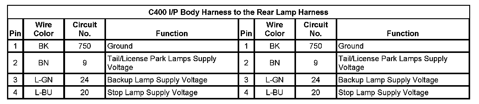 C400 I/P Body Harness to the Rear Lamp Harness