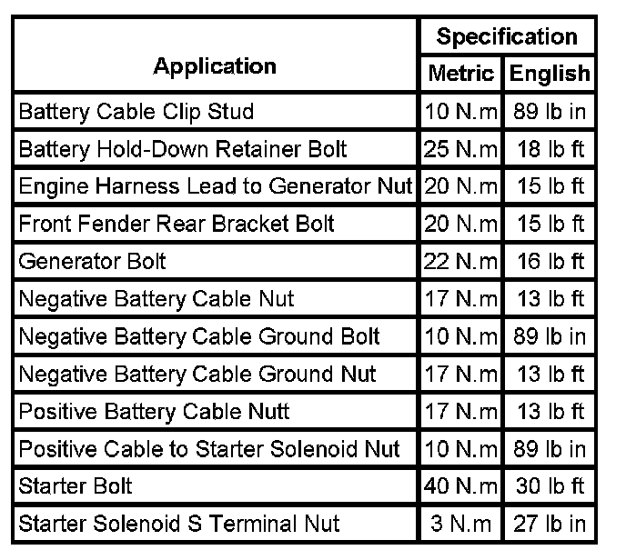 Starting and Charging: Specifications
