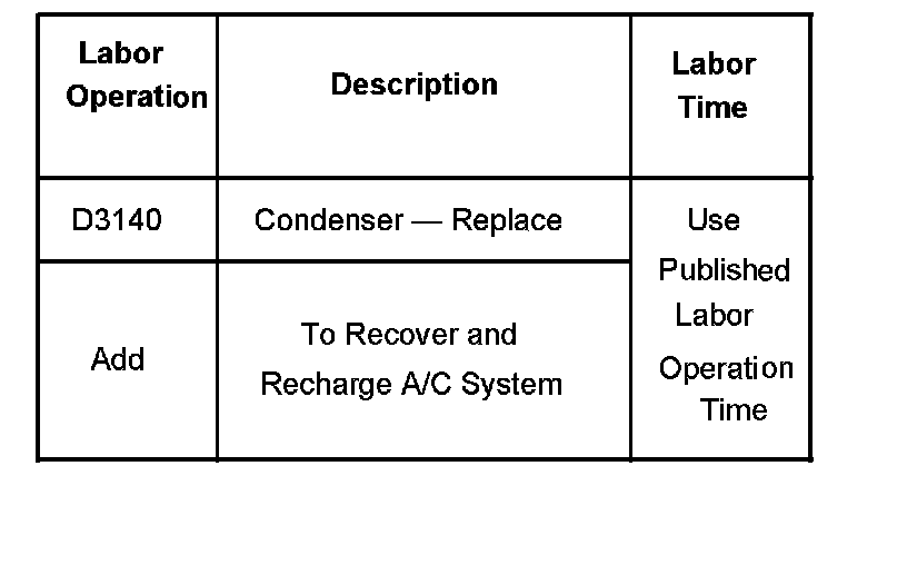 Recharge the A/C system with a revised refrigerant charge amount of 0.47 kg (1.03 lbs). Install a new A/C charge label, P/N 25831315, over the existing charge label.
