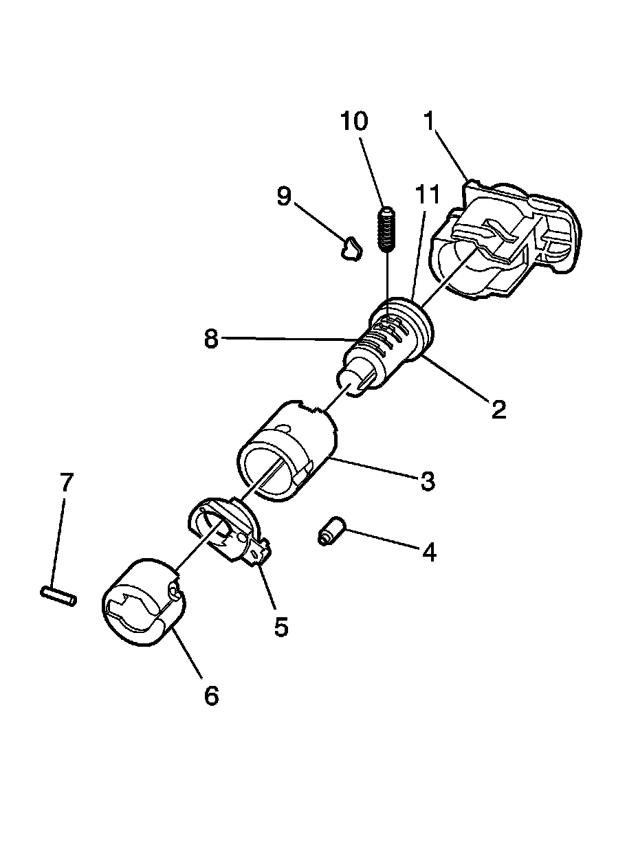 Important: Tumblers (8) are held in place with the lock cylinder sleeve (3). Tumblers (8) do not have a retention feature. As tumblers are installed, hold them in place with your fingers until the cylinder (2) is installed into the sleeve (3).