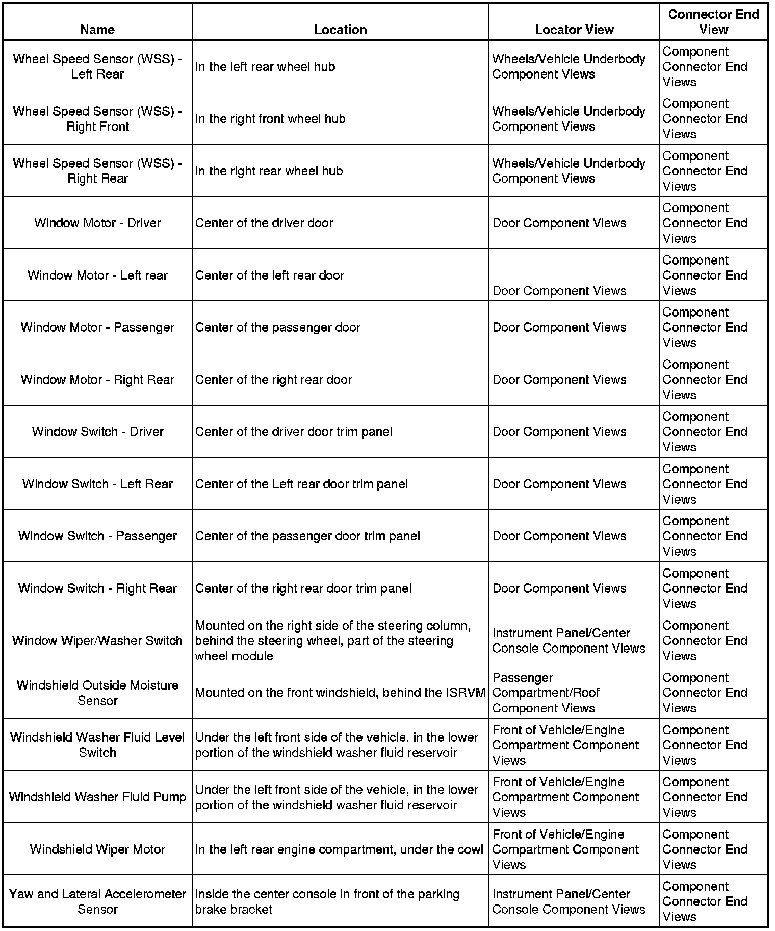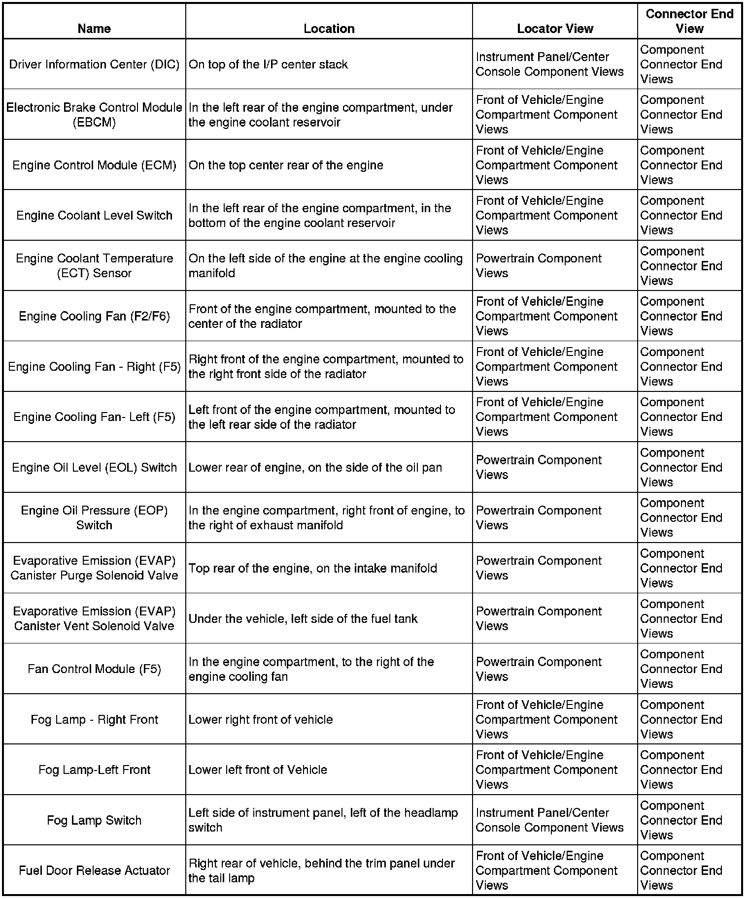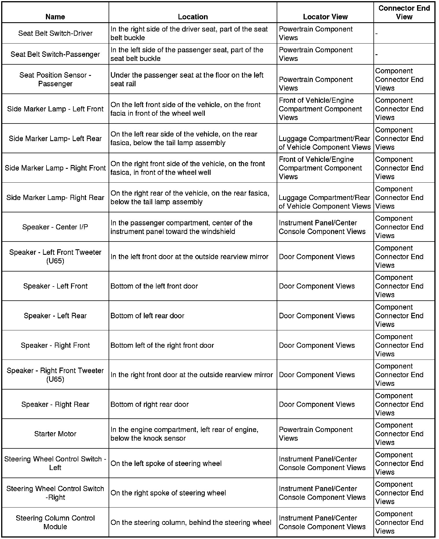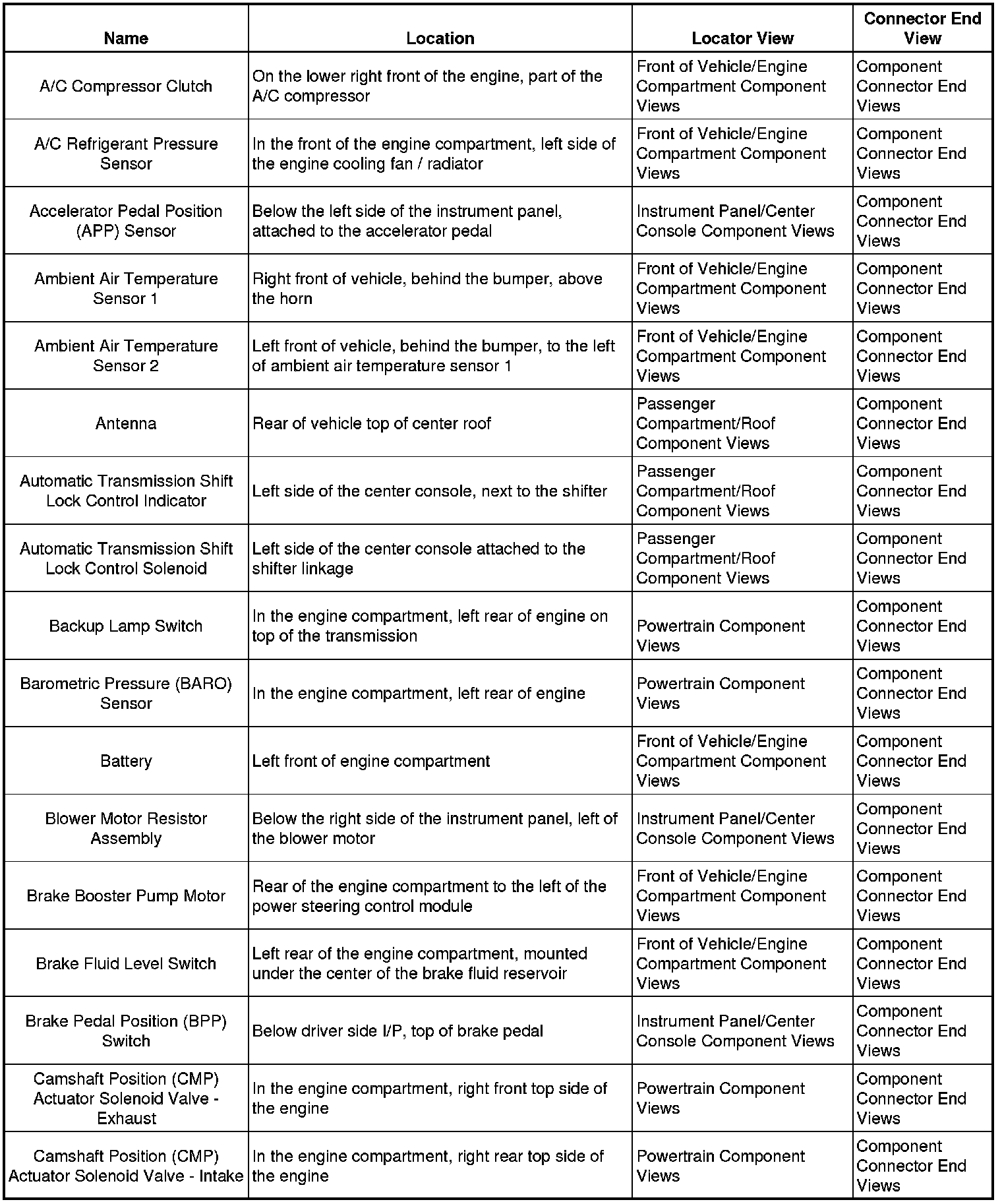 Master Electrical Component List