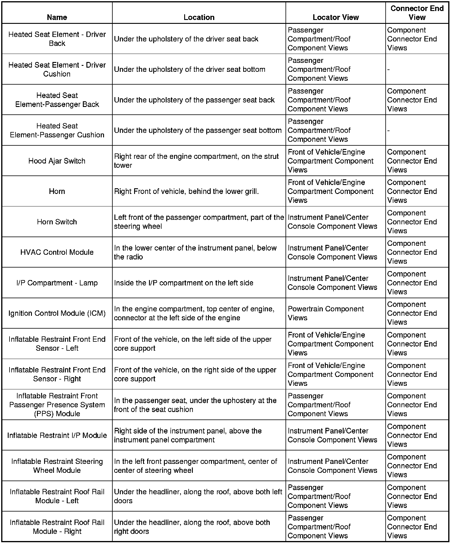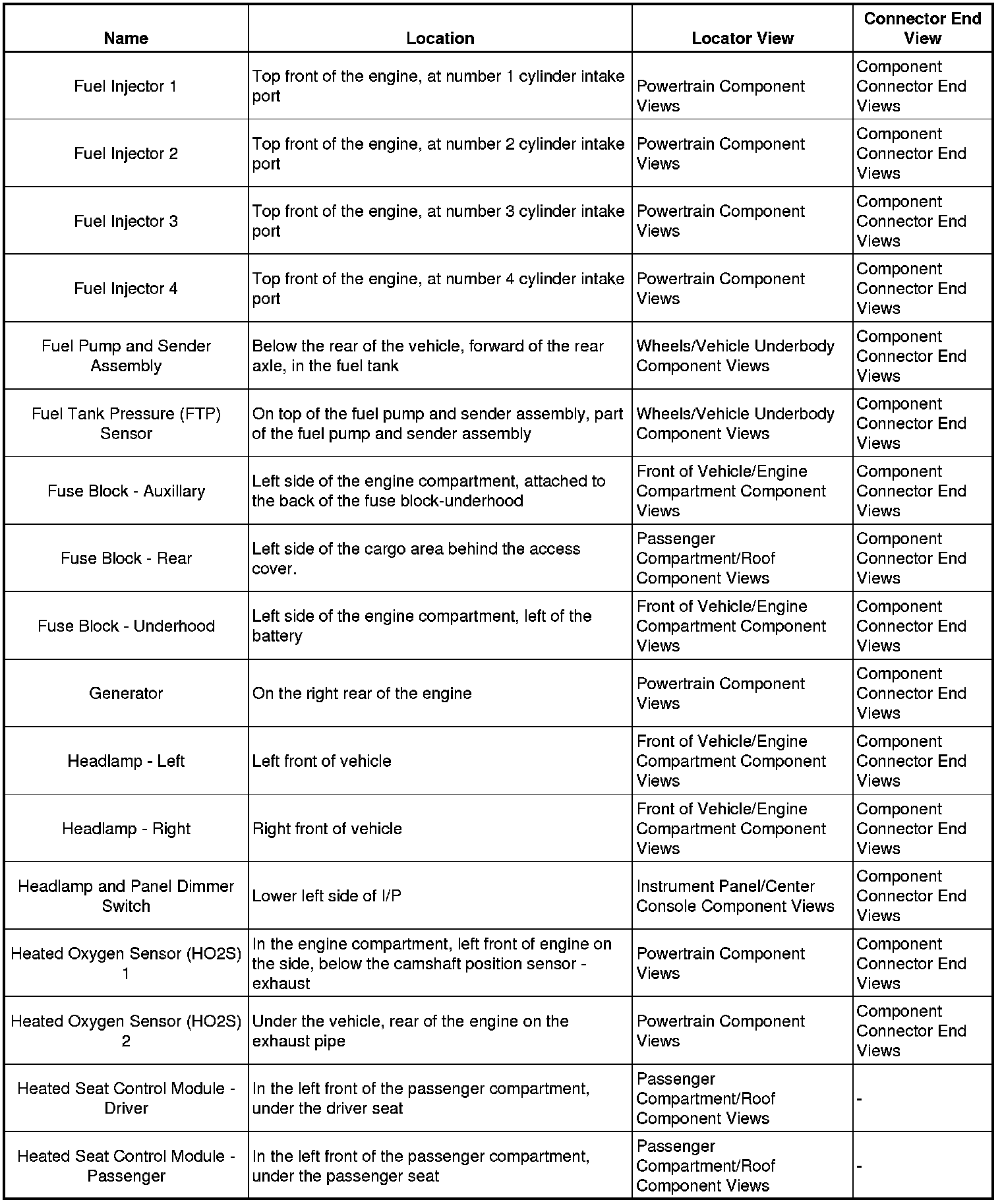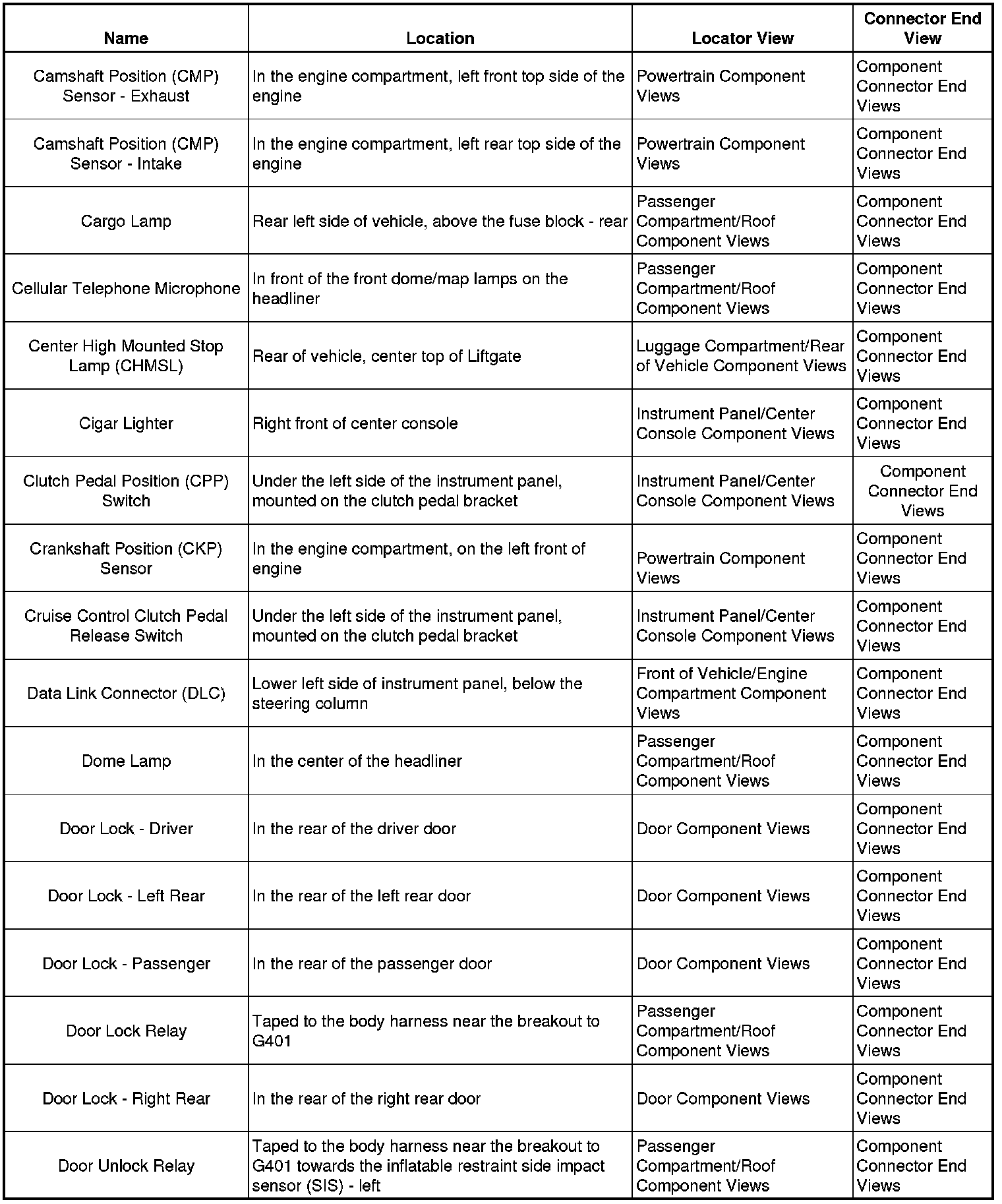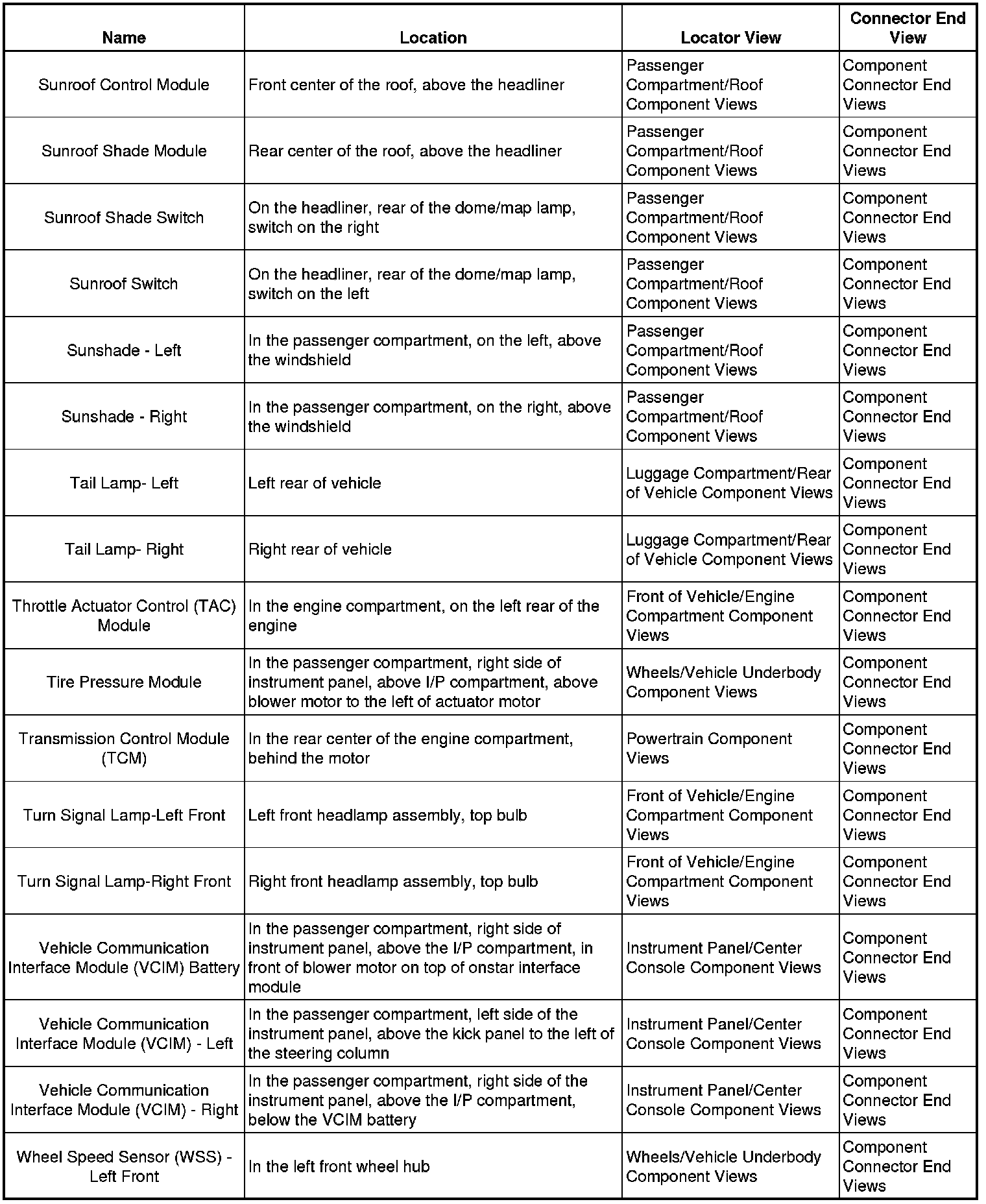 Master Electrical Component List