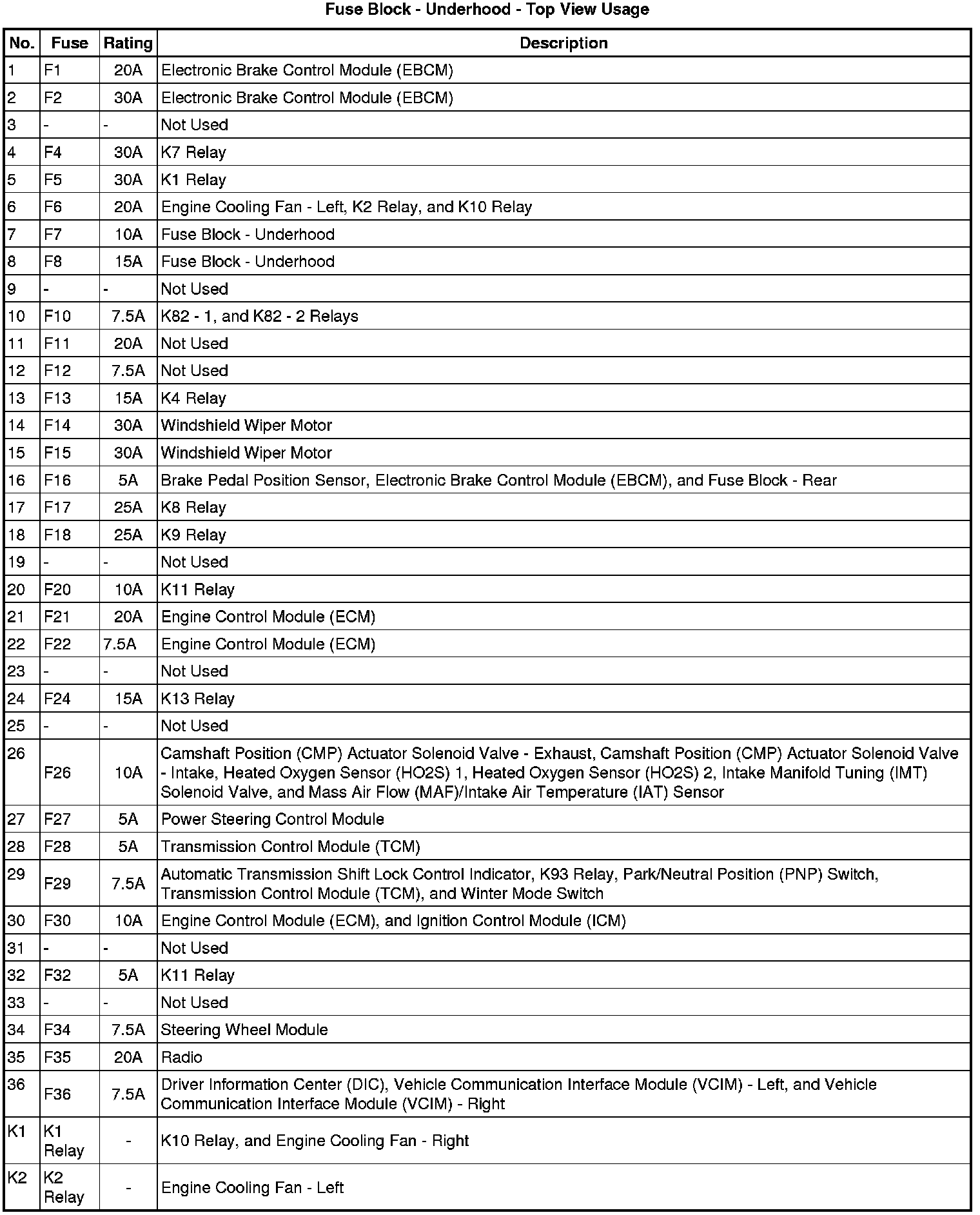 Fuse Block - Underhood - Top View