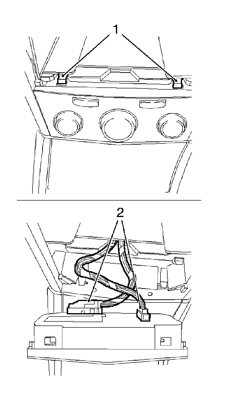 2. Push the removal bracket into the openings (arrows) until it engages, press outwards and withdraw radio.
