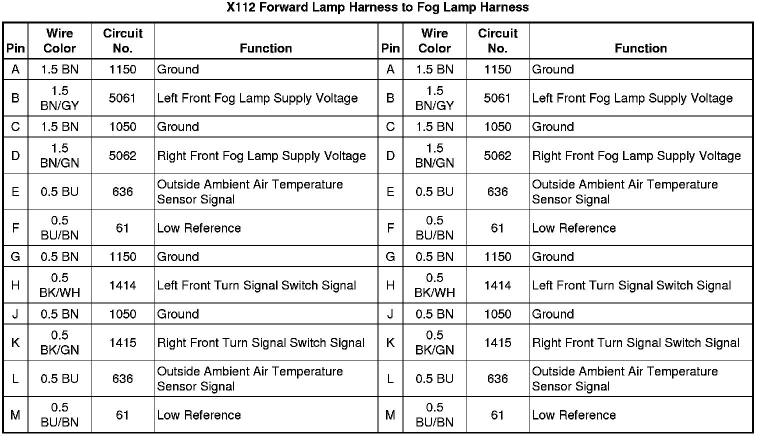 X112 Forward Lamp Harness to Fog Lamp Harness