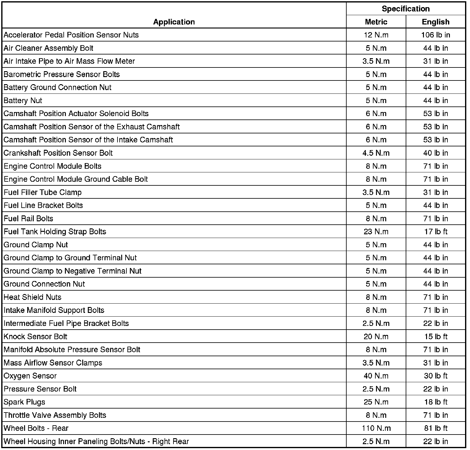 Fastener Tightening Specifications