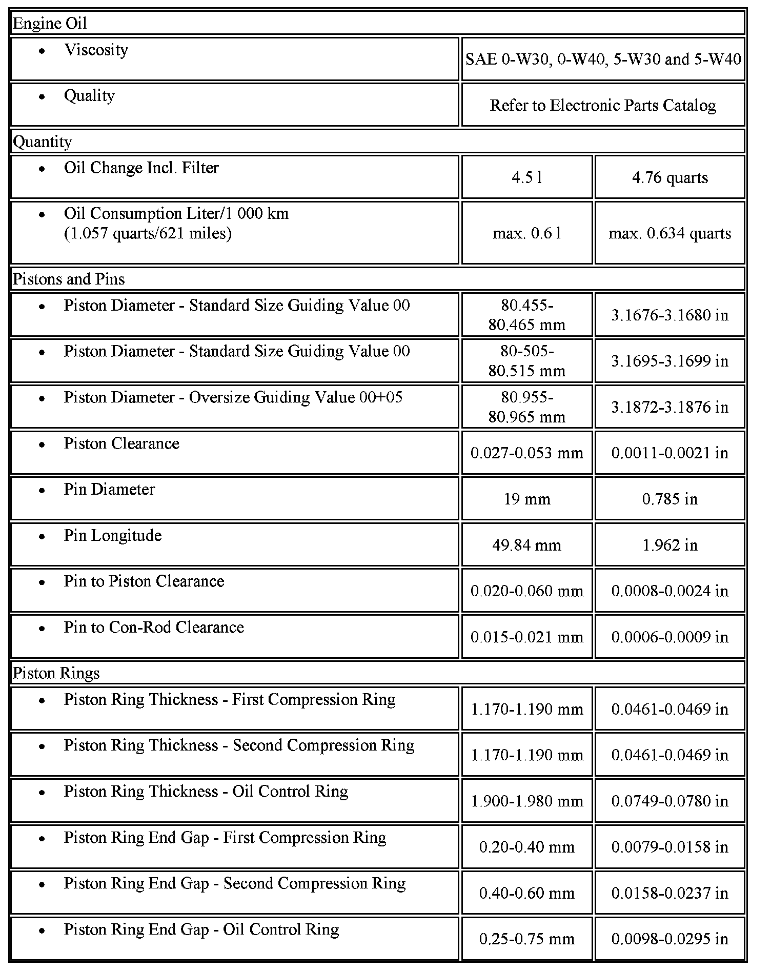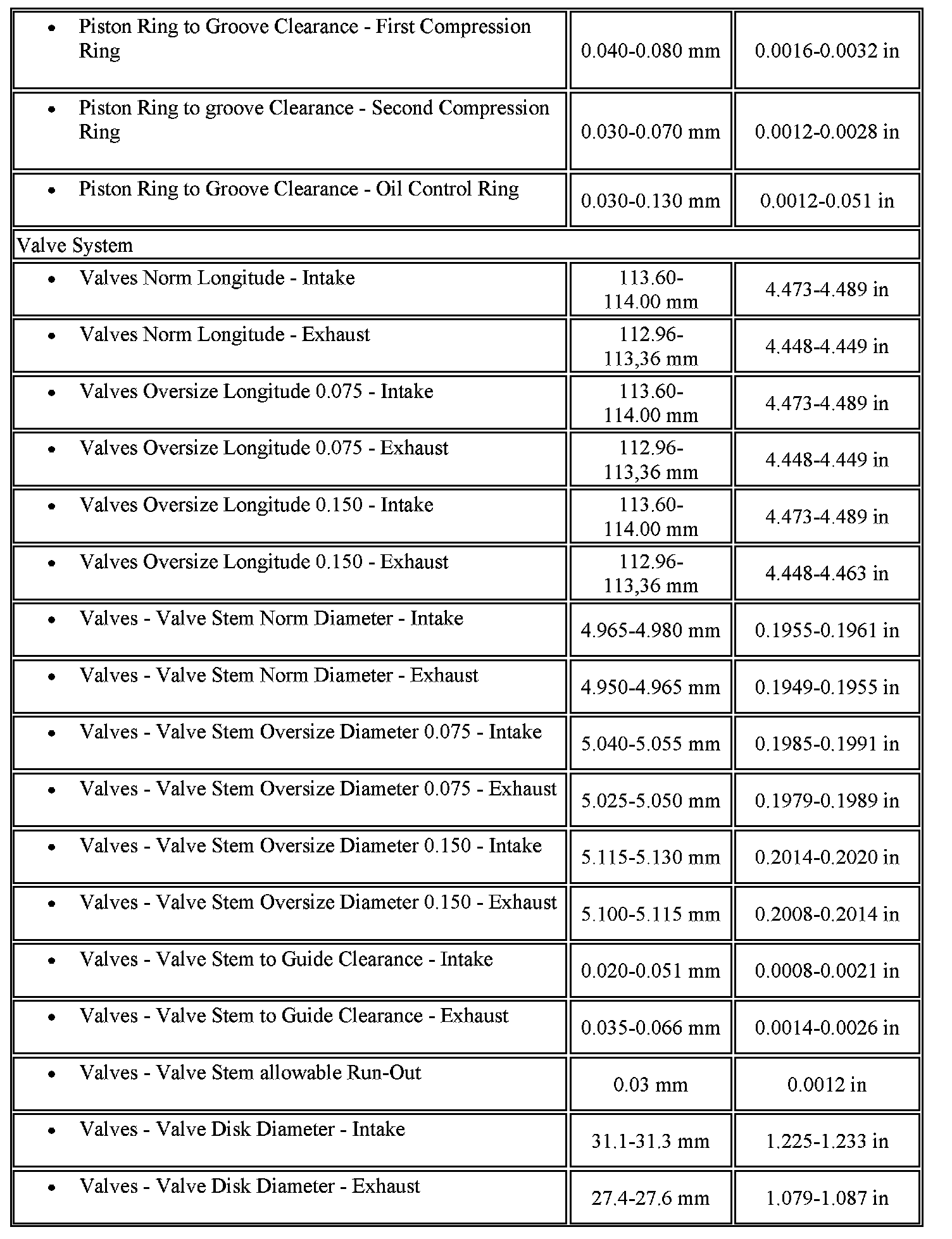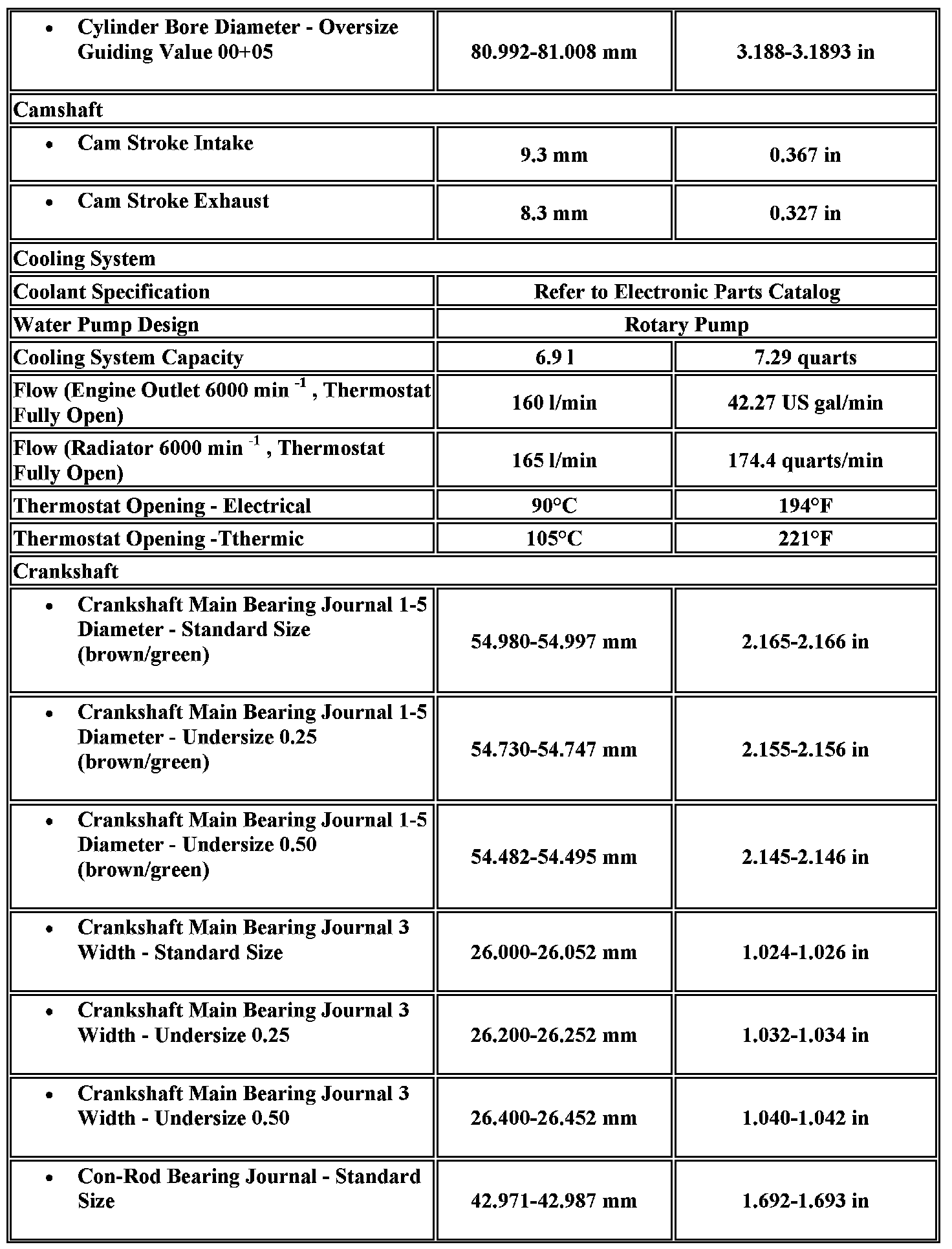 Engine Mechanical Specifications