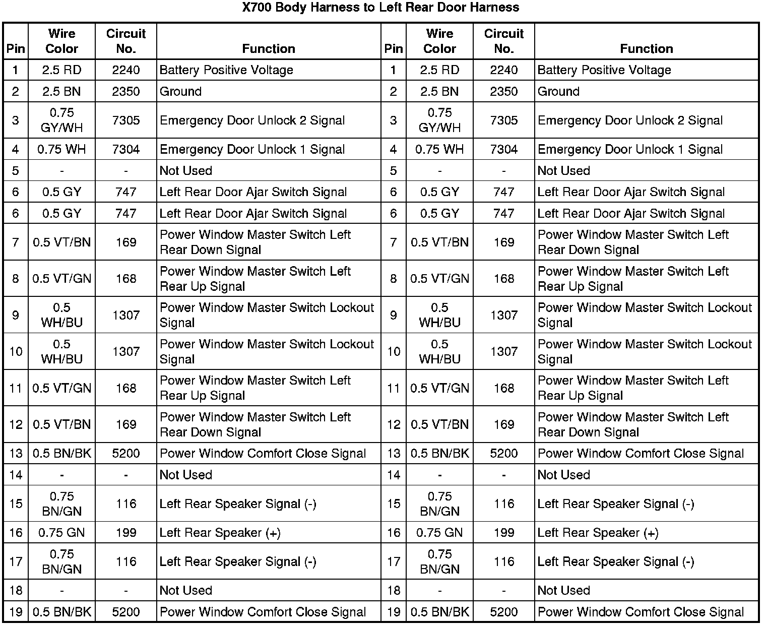X700 Body Harness to Left Rear Door Harness