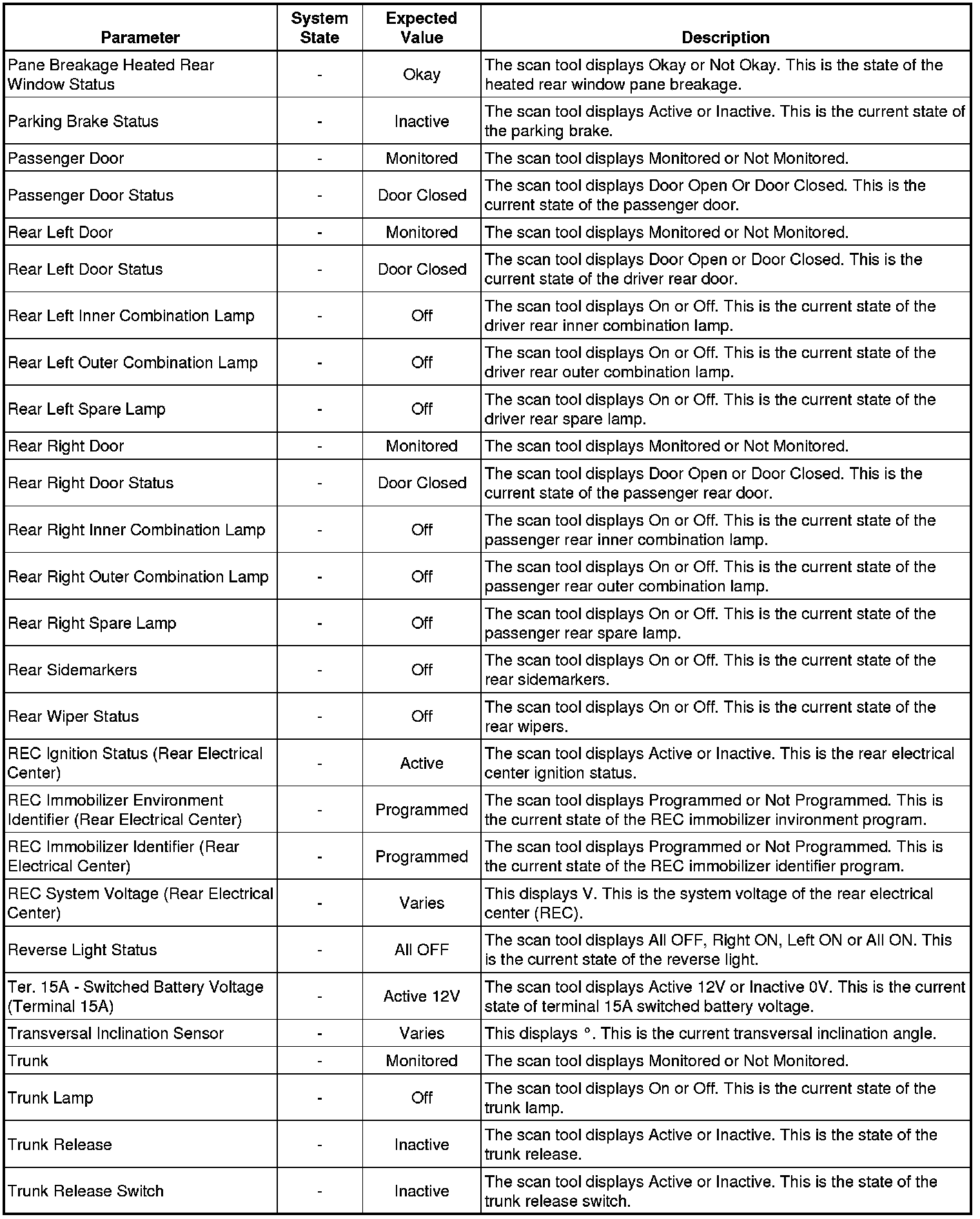 Rear Body Fuse Block Scan Tool Information