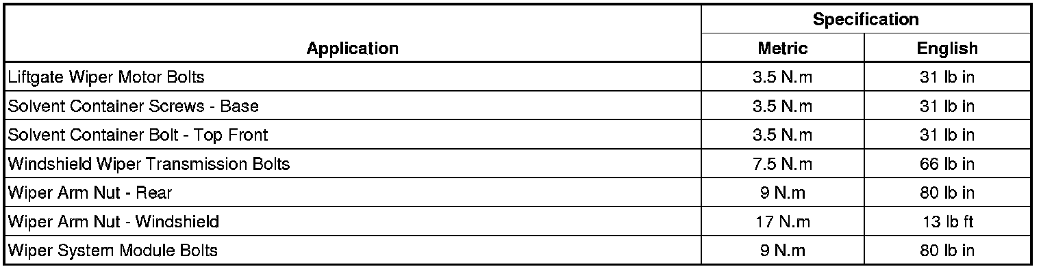 Wiper and Washer Systems: Specifications