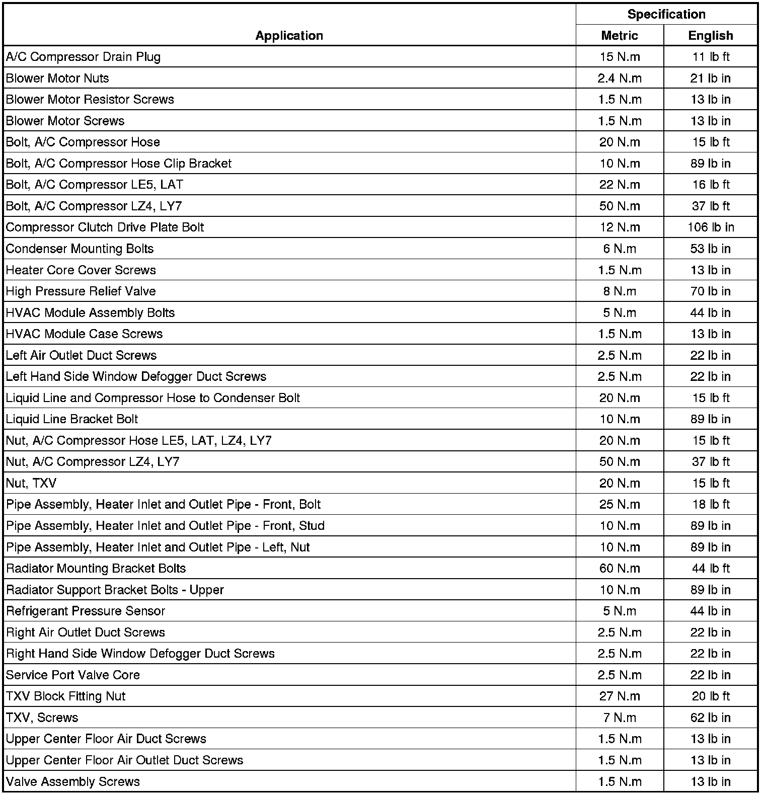 Fastener Tightening Specifications