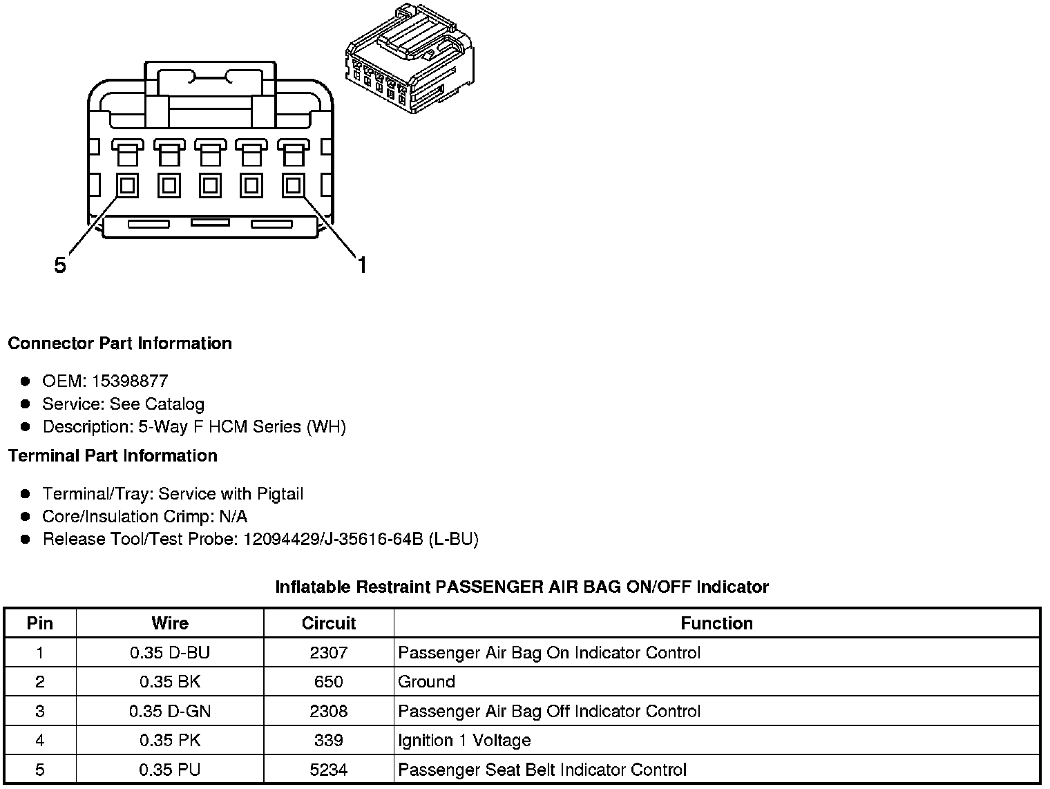 Inflatable Restraint PASSENGER AIR BAG ON/OFF Indicator