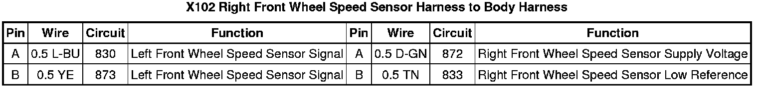 X102 Right Front Wheel Speed Sensor Harness to Body Harness