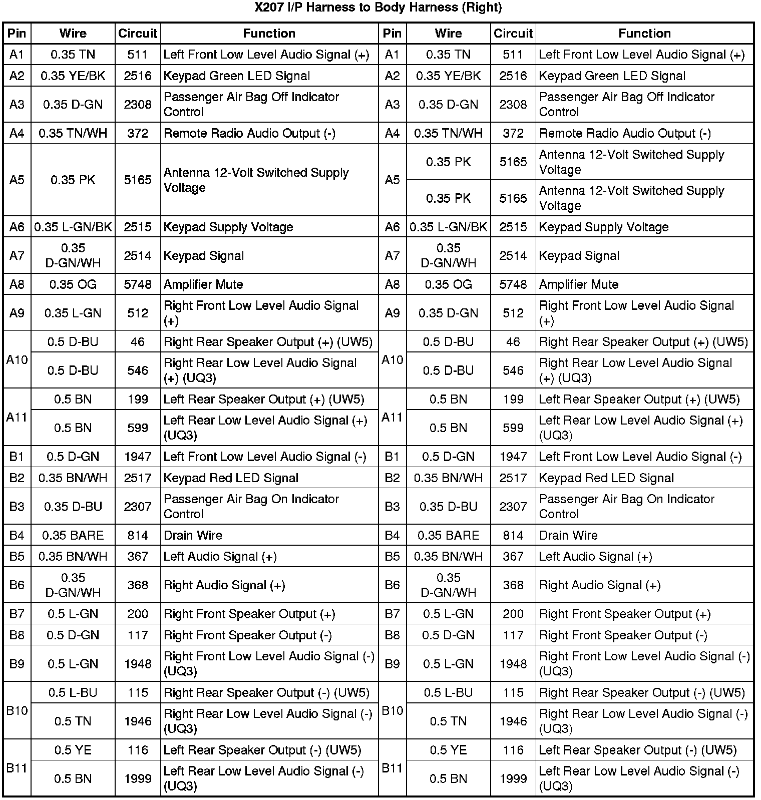 X207 I/P Harness to Body Harness (Right)