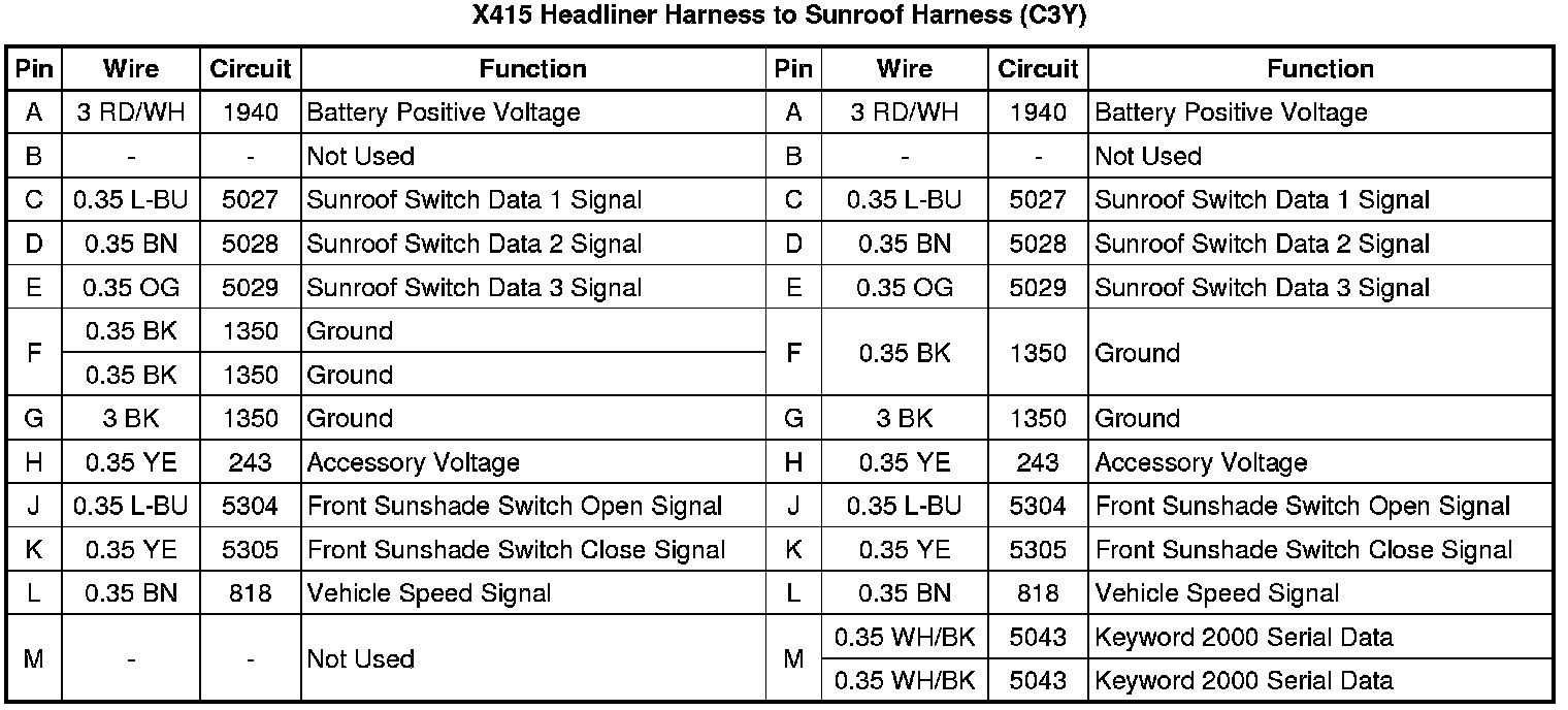 X415 Headliner Harness to Sunroof Harness (C3Y)