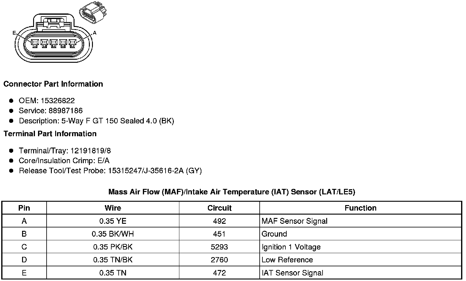 Mass Air Flow (MAF)/Intake Air Temperature (IAT) Sensor (LAT/LE5)