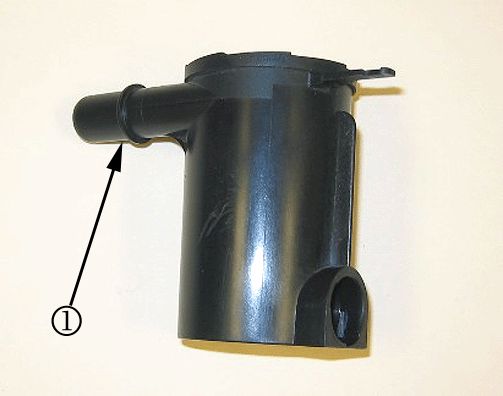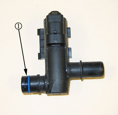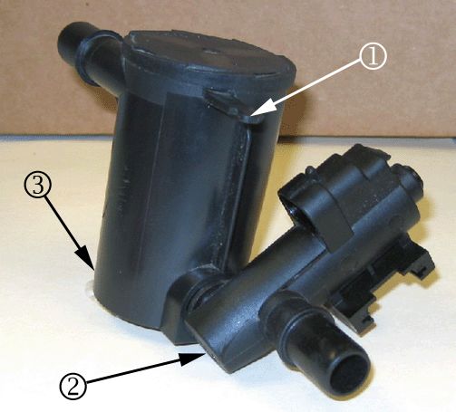 The fresh air inlet tube in the canister vent valve solenoid may be blocked or restricted with a spider nest (1), dirt or other debris.