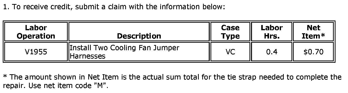 Campaign - Engine Cooling Fan Wire Harness Modification