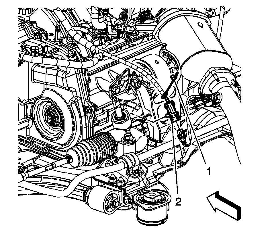 11. Disconnect the front engine wiring harness electrical connector (1) from the HO2S electrical connector.