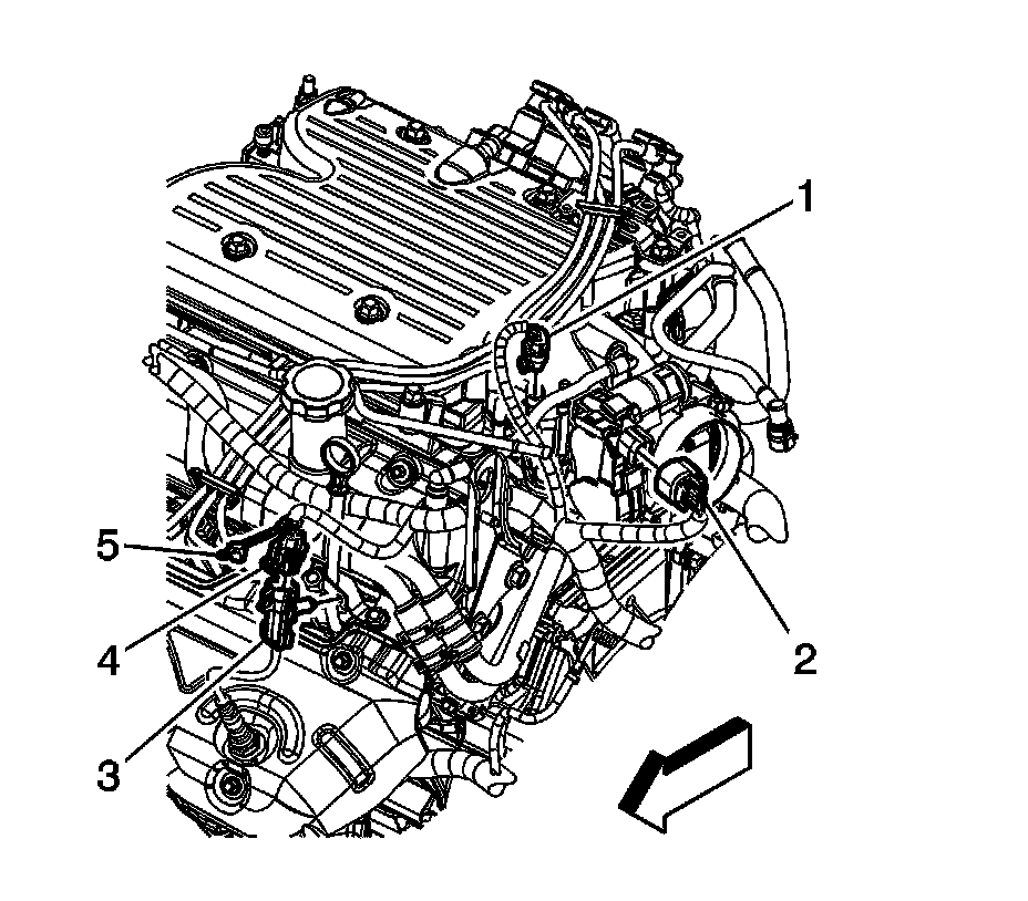 3. Disconnect the engine wiring harness electrical connector (4) from the heated oxygen sensor (HO2S) electrical connector (3).