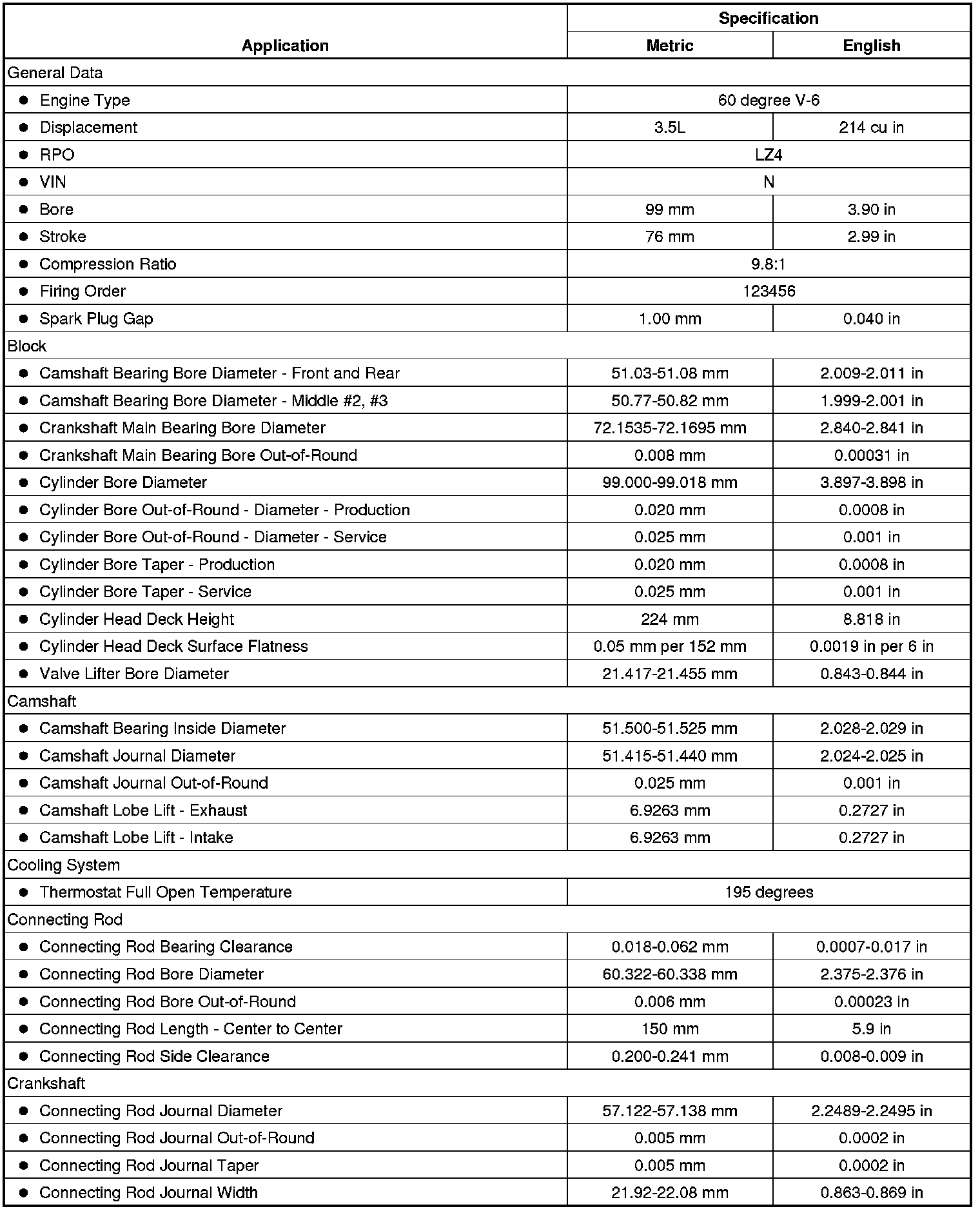 Engine Mechanical Specifications