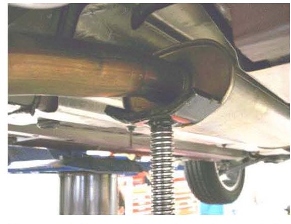 9. Remove the post jack supporting the exhaust system.