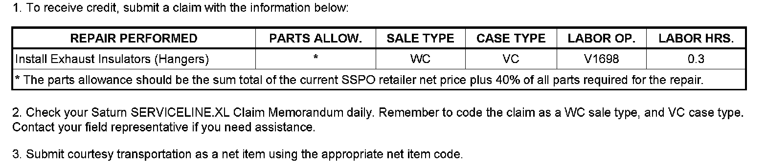 Claim Information - Saturn US Only