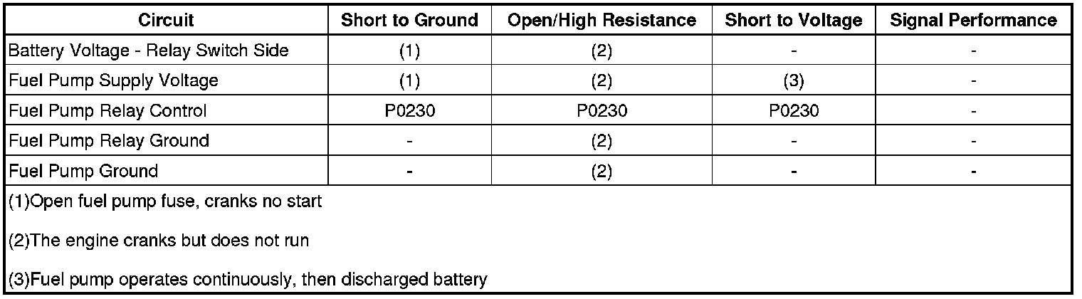Fuel Pump Electrical Circuit Diagnosis