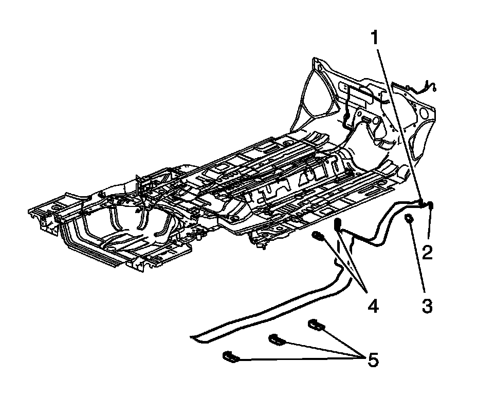 6. Install the brake, fuel and EVAP pipe retainers (5) to the underbody studs.