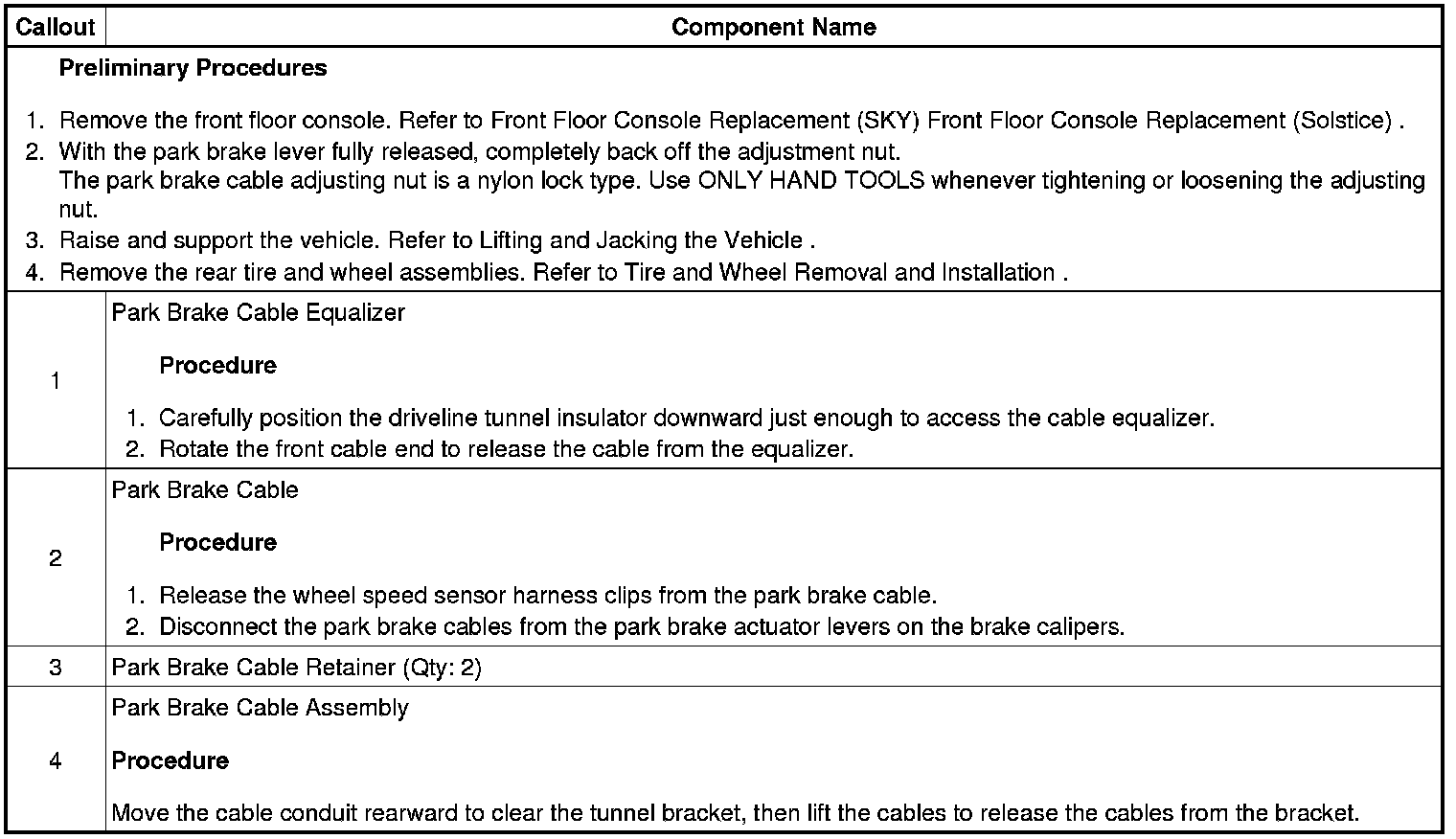 Parking Brake Cable: Service and Repair