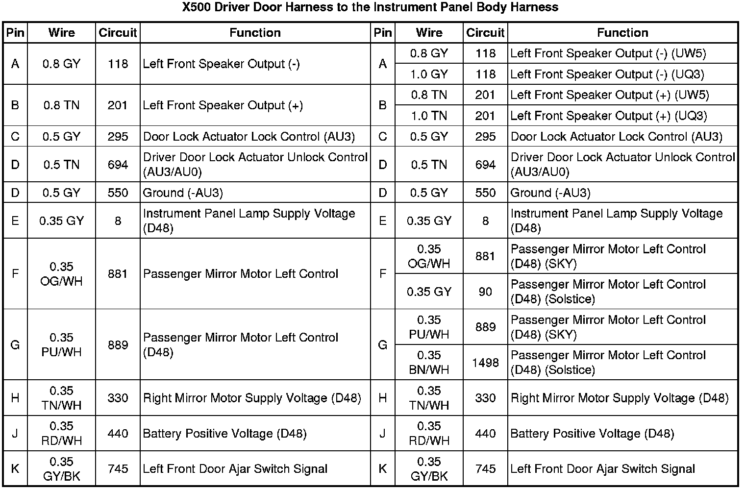 X500 Driver Door Harness to the Instrument Panel Body Harness