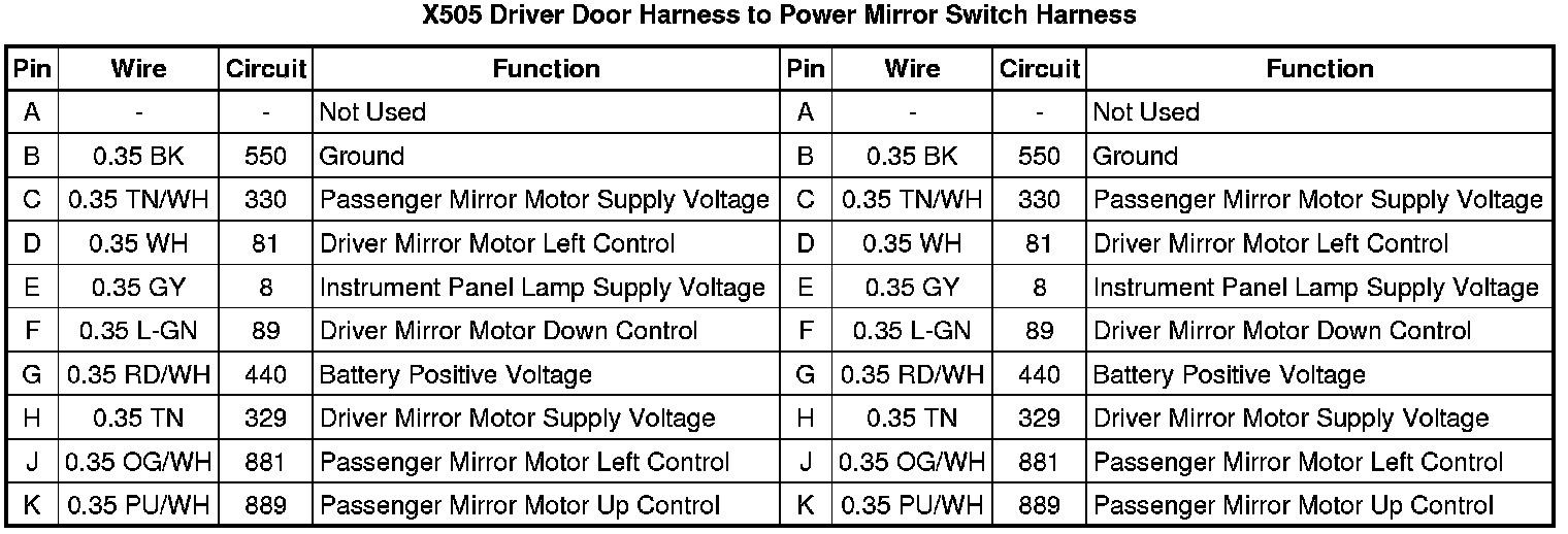 X505 Driver Door Harness to Power Mirror Switch Harness