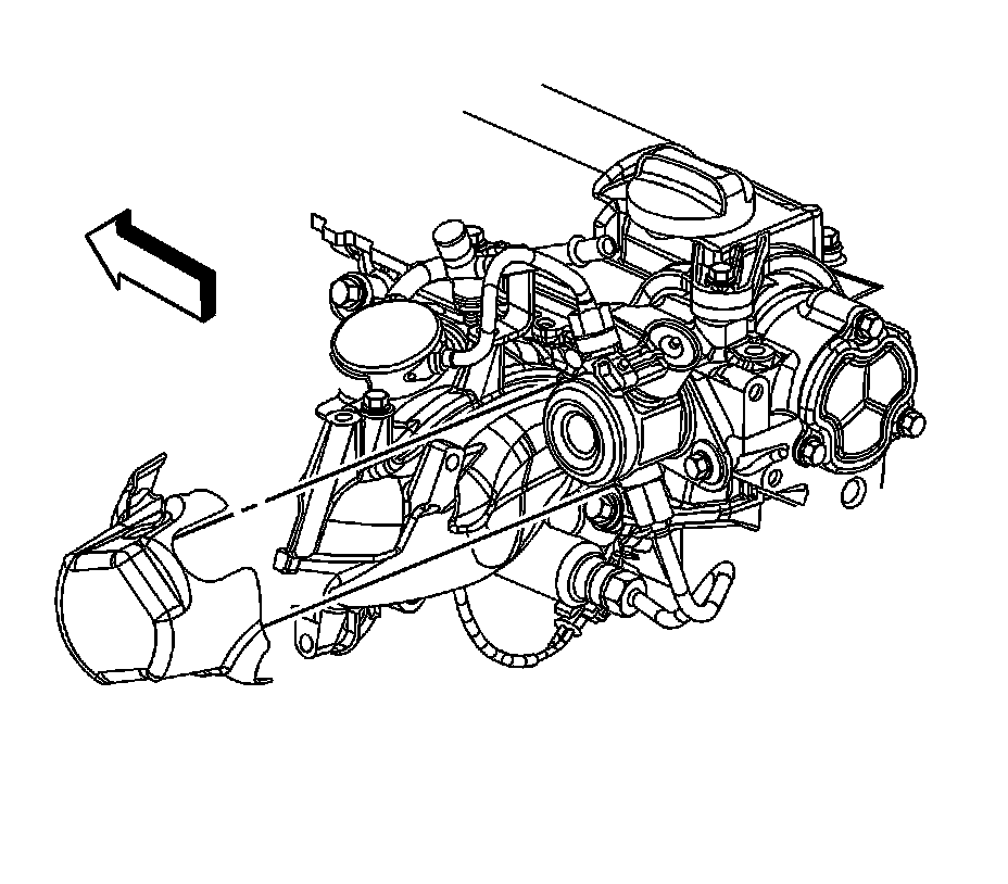 4. Remove the turbocharger coolant feed pipe. Refer to Turbocharger Coolant Feed Pipe Replacement (LNF) (Turbocharger Coolant Feed Pipe Replacement (LNF)) .