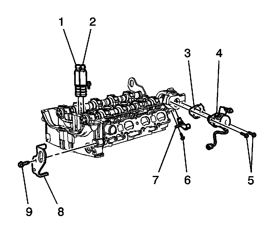 7. Remove the intake camshaft, follower, and adjuster. Refer to Intake Camshaft, Bearing Cap, and Lash Adjuster Removal (Overhaul) .