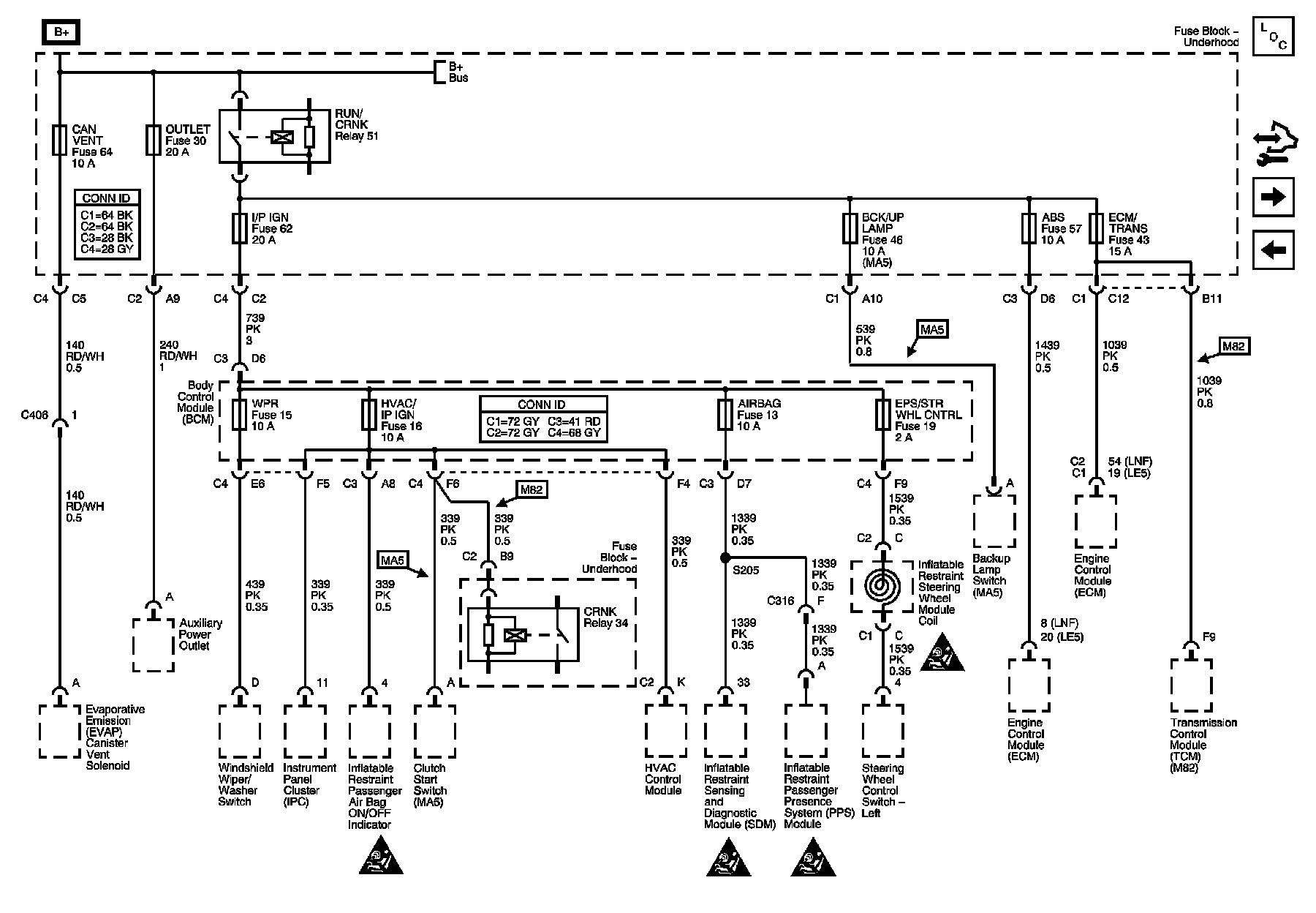 ABS, BCK/UP Lamp, Can Vent, ECM/Trans, I/P IGN, Air Bag, EPS/STR WHL CNTRL, HVAC/IP IGN, WPR Fuses