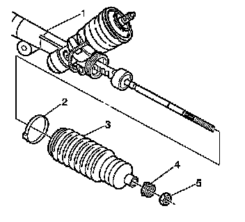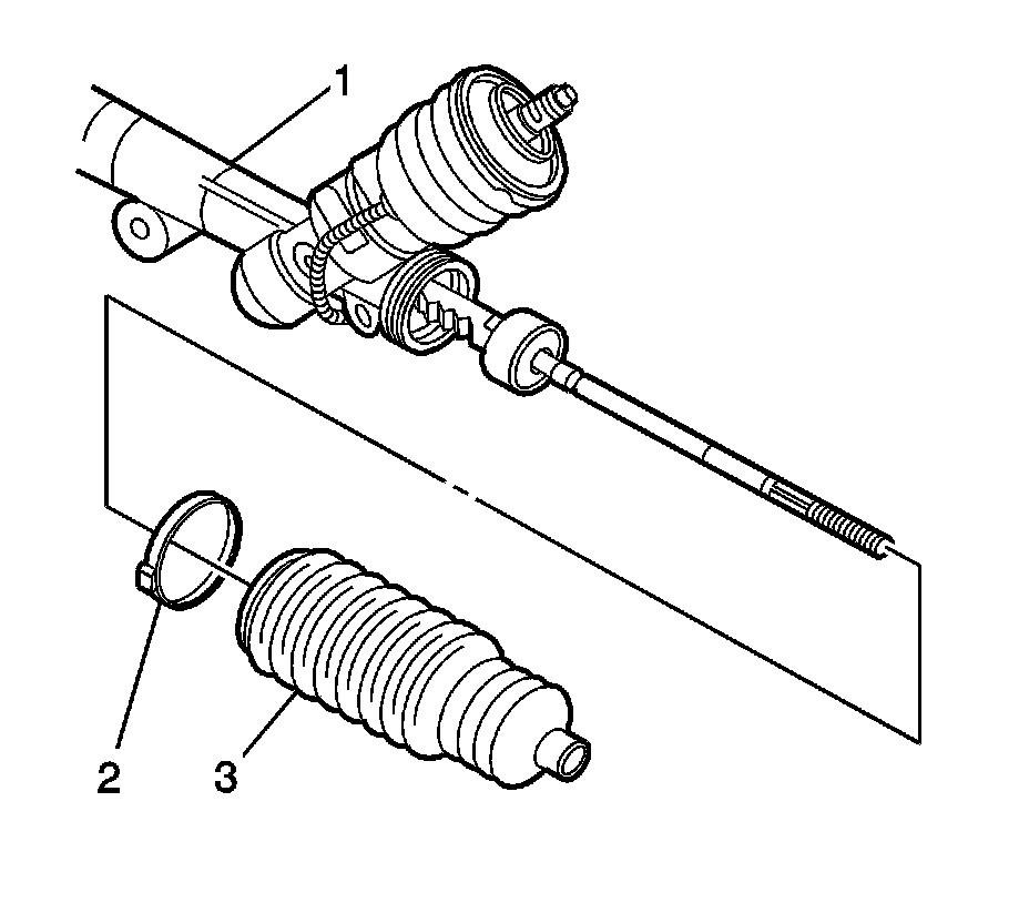 5. Remove the steering gear boot (3) from the steering gear (1).