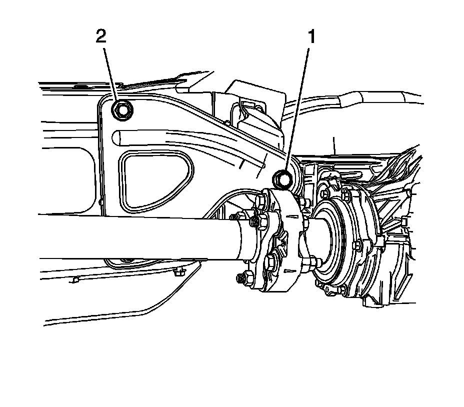 4. Install the 2 differential carrier bracket to frame bolts (2).