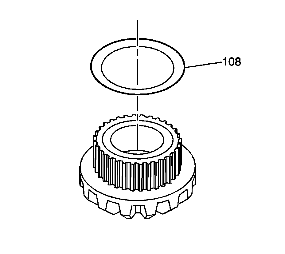 13. Remove the beveled washer from the axle side gear. Note that the orientation of the beveled washer (108) faces out.