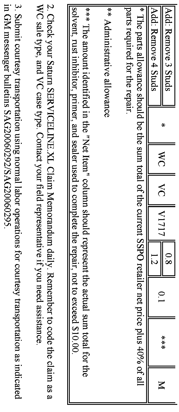 Claim Information -- Saturn US Only