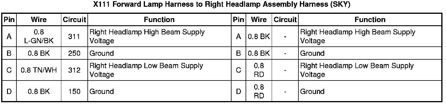 X111 Forward Lamp Harness to Right Headlamp Assembly Harness (SKY)